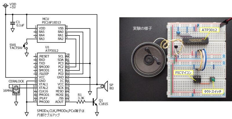 ATP3012は、15種類のプリセットメッセージを内部EEPROMに設定することができます。この実験では、プリセットメッセージの設定と発声を試します。